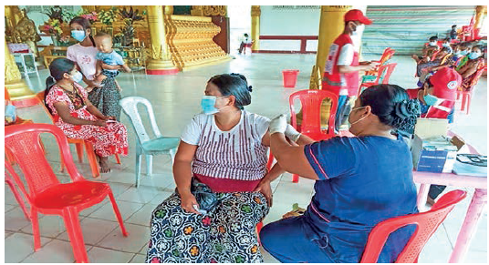 Yesterday, doctors and nurses from public hospitals, medical teams from the Tatmadaw, relevant healthcare workers in collaboration with volunteers gave COVID-19 vaccines to 15,330 people from twenty six townships in Ayeyawady Region, 2,317 people from six townships in Rakhine State, and 8,226 from seven districts in Mandalay Region, respectively.