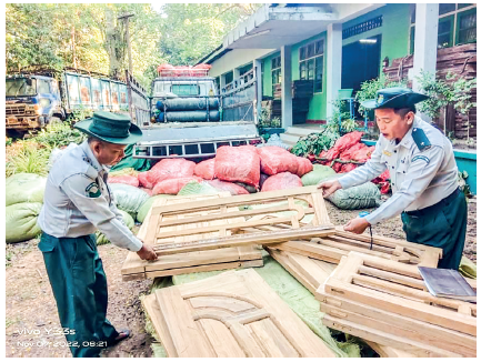 Officials nabbed a total of 0.8058 tonne of illegal teak doors and teak window frames worth K531,828 from an Isuzu car (estimated value of K15 million) at the wood and forest product checkpoint at 30/1 Milepost on Yangon-Pyay Road. The action was taken under the Forest Law.