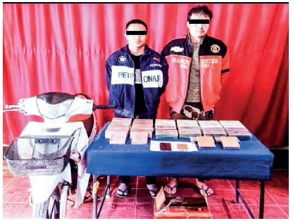 Acting on a tip-off, a combined team consisting of members of the Anti-Drug Police Force stopped and searched a motorcycle driven by Sai Sot (aka) Sai Kyaw accompanied by Sai Sai (aka) Aik Kyaing (aka) Sia Phon near Wantone village, Tachilek Township in eastern Shan State. A total of 54 blocks of heroin weighing 18.9 kilogrammes and estimated to be worth K283.5 million were found in the paper box on the motorcycle.