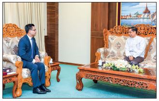 UNION Minister U Ko Ko Hlaing of the Ministry of International Cooperation received Mr Chhouk Bunna, Ambassador Extraordinary and Plenipotentiary of the Kingdom of Cambodia to the Republic of the Union of Myanmar, who is leaving Myanmar after completion of his tour of duty in Myanmar at 11 am on 13 December 2022 at the ministry in Nay Pyi Taw.