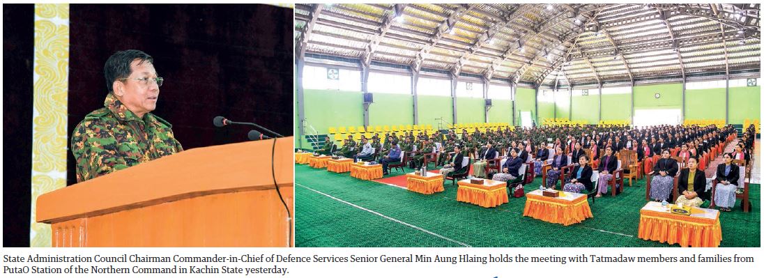Likewise, if security forces, departmental personnel and all local people are in unison, anyone cannot harm the region. So, they all have to build a united strength, said Chairman of the State Administration Council Commander-in-Chief of Defence Services Senior General Min Aung Hlaing at a meeting with officers, other ranks and families from PutaO Station of Northern Command at the station hall yesterday morning.