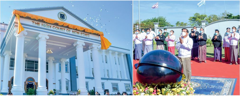The Senior General recounted that the government built high court buildings in Mandalay Region, Chin and Mon states. In this regard, the Mandalay Region High Court was commissioned into service on 22 January 2022 and the Mon State High Court was inaugurated today.