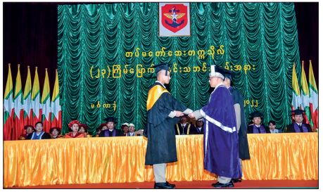 Commandant Brig-Gen Aung Min Oo of the Defence Services Medical Academy and Brig-Gen Khin Aung Htun and academic officers attended the convocation.