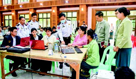 Then, she observed the crosscheck processes carried out by the staff of UEC, the General Administration Department and the Ministry of Immigration and Population using computer software on duplication of ID cards, ones who do not have ID cards/ perfect documents, those under age of 18, incomplete date of birth and double date of birth and month together with Rakhine State Social Affairs Minister U Aung Myo.