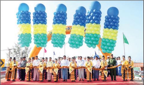 Then, SAC member Daw Aye Nu Sein made a remark and Rakhine State Chief Minister reported on regional development programmes, and a local expressed gratitude. After cutting the ribbon to inaugurate the bridge, the SAC members and officials took the commemorative photo.