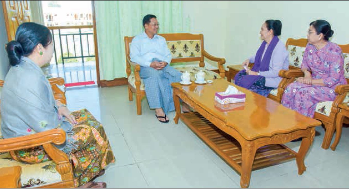 Then, the Senior General and wife individually greeted family members of the Heads of State who served in State duties in successive eras and families of senior military officers who were Daw Than Than Nu, daughter of U Nu, Daw Lei Lei Yu, daughter of U San Yu, U Thiha Saw, son of Senior General Saw Maung, Dr Khin Sanda Win, daughter of U Ne Win, Daw Nay Yee Ba Swe, daughter of U Ba Swe, Daw Cho Cho Kyaw Nyein, daughter of U Kyaw Nyein, U Zaw Tun, son of Lt-Gen Tun Yi, and Dr Cho Lwin Oo, daughter of U Sein Lwin in a cordial manner, asked about their daily life, individual health conditions and other needs and attended to the needs.
