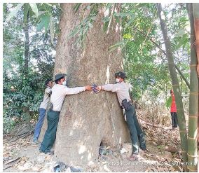 The 100-year-old Thabyay (Eugenia) was found in the No 46 Hmyinwa Hill forest reserve in Myanaung on 26-1-2021, and it is 22 feet and eight inches in girth and about 100 feet in height. The people can study the tree after a half-a-mile walk west from Pathein-Monywa road milepost 78/2.