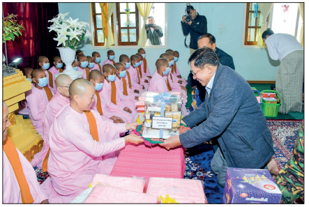 STATE Administration Council Chairman Prime Minister Senior General Min Aung Hlaing yesterday morning offered alms to Theravada Buddhist Missionary (Central) Monastery and Theravada Buddhist Missionary Nunnery in Lahe.