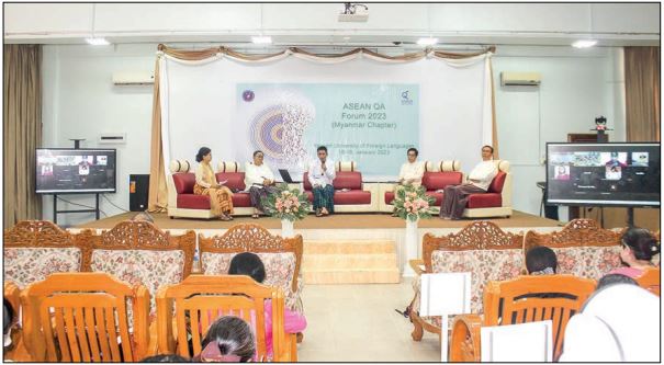 THE opening ceremony of ASEAN-QAA FORUM 2023: Myanmar Chapter held in collaboration between the ASEAN-QA Association and Yangon University of Foreign Language took place at the multimedia room of YUFL yesterday morning. Students of YUFL performed traditional dances.