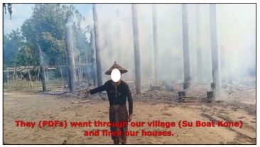 Fighting erupted in the morning. The PDF torched about 30 houses. We were too afraid to put out the fire.