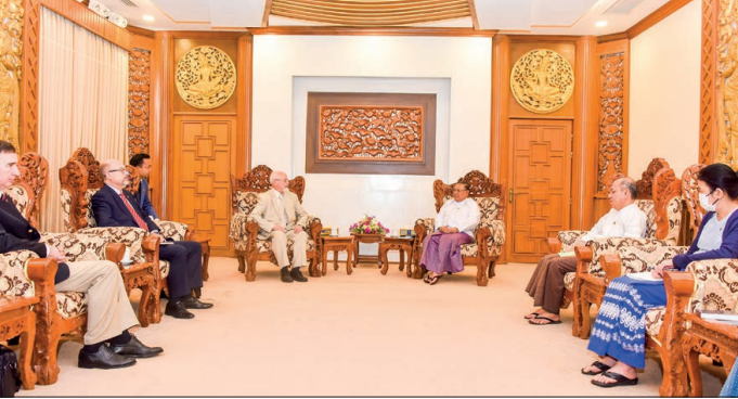 NION Minister for Foreign Affairs U Wunna Maung Lwin received a delegation led by Mr Anatoly Bulochnikov, Senior Vice-President of the Russia-Myanmar Association for Friendship and Cooperation, at the Ministry of Foreign Affairs in Nay Pyi Taw at 11:30 am on 26 January 2023.