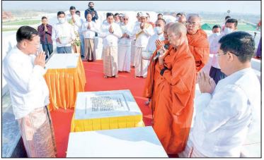 After reciting the Gathas to launch the ceremony, the Senior General and party listened to the Buddha sermons recited by the Sayadaws.