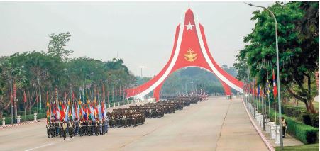 Officers and other ranks from Tatmadaw (Army, Navy andAir), female military parade company from Tatmadaw (Army), members of Myanmar Police Force and female police members parade company took positions in relevant parade columns at Thittat parade ground on theparade agenda. The mechanized parade column led by Column Commander Brig-Gen Zaw Tun Oo comprising mechanized companies representing the Directorate of Artillery Corps, Directorate of Missile Corps, Directorate of Armoured Corps, Office of the Chief of Air Defence Corps, Directorate of Military Engineers and Office of the Commander-in-Chief (Navy) took the positions in the parade ground.