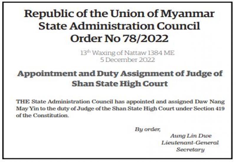 Republic of the Union of Myanmar State Administration Council Order No 78/2022