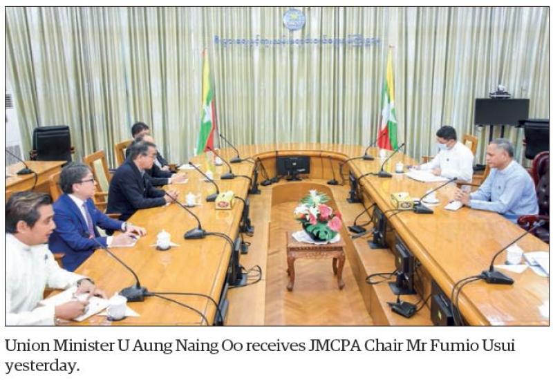 UNION Minister U Aung Naing Oo of the Ministry of Commerce, received the delegation led by Chairman Mr Fumio Usui of the Japan-Myanmar Cultural Promotion Association at the meeting room of the ministry in Nay Pyi Taw yesterday morning.