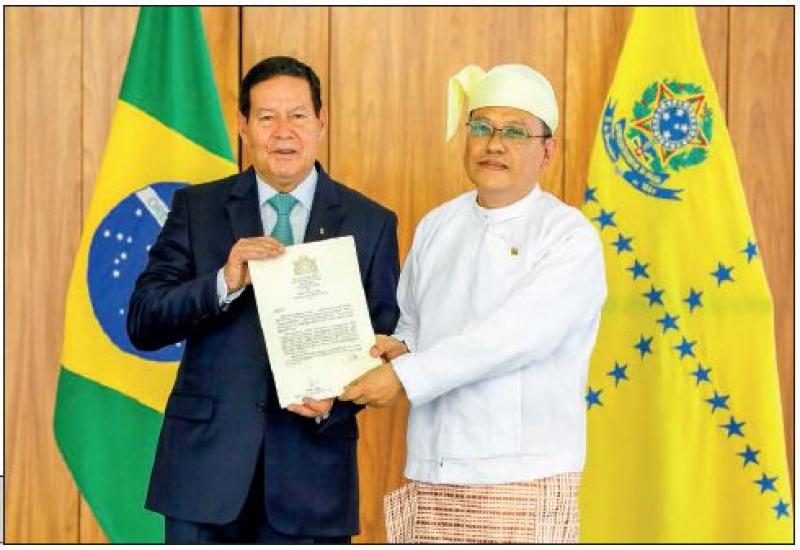 U Aung Kyaw Zan, Ambassador Extraordinary and Plenipotentiary of the Republic of the Union of Myanmar to the Federative Republic of Brazil, presented his Credentials to Mr Antonio Hamilton Martins Mourao, Vice-President of the Federative Republic of Brazil on 16 November 2022 in the President Office.