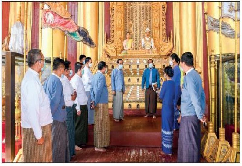 UNION Minister U Ko Ko of the Ministry of Religious Affairs and Culture visited the Myanansankyaw Golden Palace and inspected the kings’ chambers, queens’ chambers, stone inscription chambers 1 and 2, the cannon museum, which is displaying various ancient cannons and tombstones of King Mindon and the queen, yesterday morning.