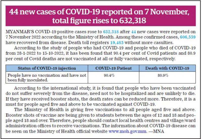 44 new cases of COVID-19 reported on 7 November, total figure rises to 632,318