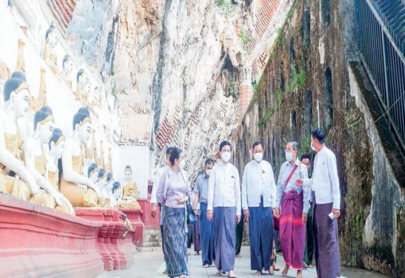 STATE Administration Council Member Mahn Nyein Maung and Union Ministers Lt-Gen Tun Tun Naung, Dr Pwint San, U Min Thein Zan and Dr Thet Thet Khine, Kayin State Chief Minister U Saw Myint Oo and officials paid a visit to the ancient historical Kawgun Cave in Barkat Village-tract, Hpa-an on 4 November evening. Donations were made after they viewed ancient votive tablets and Buddha statues inside the cave.