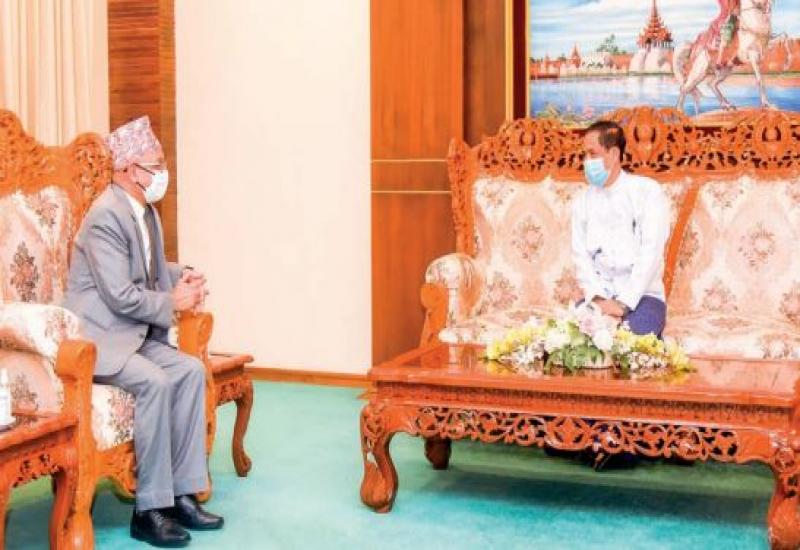 UNION Minister U Ko Ko Hlaing of the Ministry of International Cooperation of the Republic of the Union of Myanmar received Mr Harishchandra Ghimire, Ambassador Extraordinary and Plenipotentiary of Nepal to the Republic of the Union of Myanmar at 4 pm on 21 October 2022 at the Ministry of International Cooperation in Nay Pyi Taw.