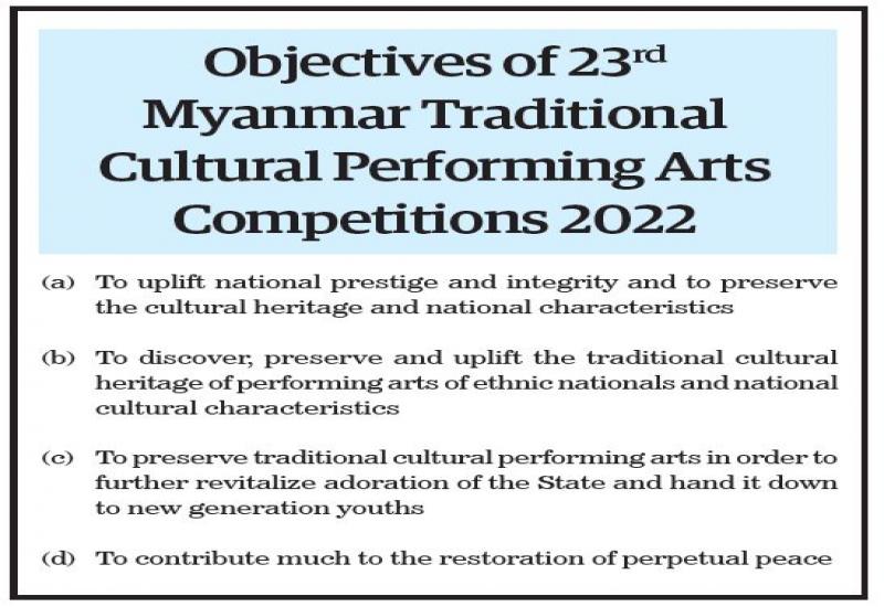 Objectives of 23rd Myanmar Traditional Cultural Performing Arts Competitions 2022 #TheGlobalNewLightOfMyanmar