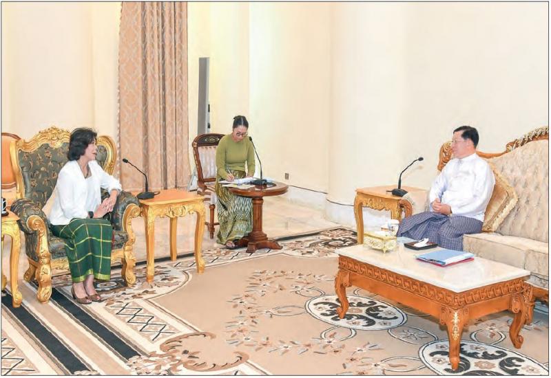 Chairman of the State Administration Council Prime Minister Senior General Min Aung Hlaing received Ms Noeleen Heyzer, Special Envoy of the United Nations Secretary-General on Myanmar, at the parlour of the SAC Chairman’s Office in Nay Pyi Taw yesterday afternoon.