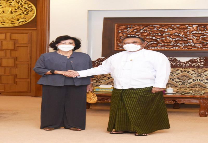 U Wunna Maung Lwin, Union Minister for Foreign Affairs of the Republic of the Union of Myanmar received Ms. Noeleen Heyzer, Special Envoy of the United Nations Secretary-General on Myanmar at 1000 hrs on 17 August 2022 at the Ministry of Foreign Affairs in Nay Pyi Taw.