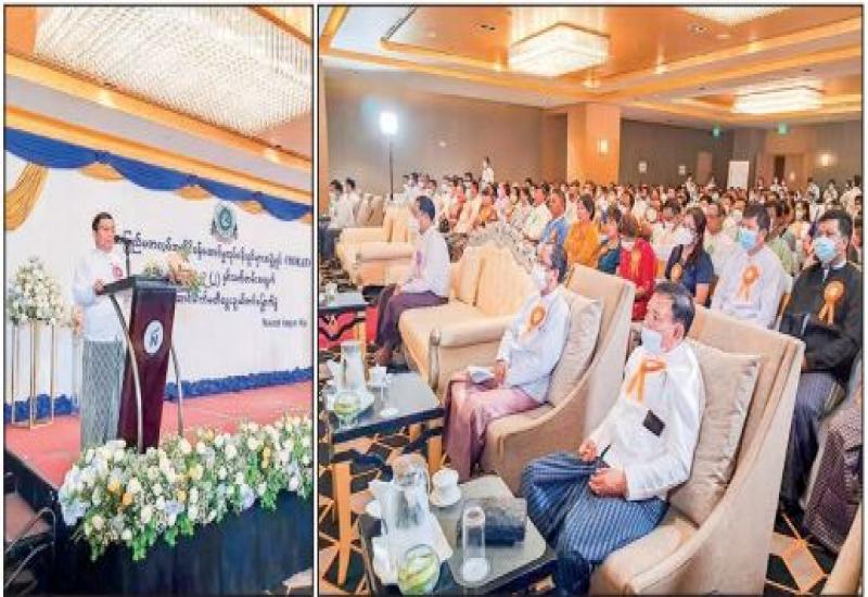 UNION Minister U Wunna Maung Lwin of the Ministry of Foreign Affairs delivered the opening remarks at the “Inauguration Ceremony of the Myanmar Institute of Strategic and International Studies-MISIS (2022-2026)”, held at the Winzinminyarzar Hall, Ministry of Foreign Affairs, Yangon, 18 July 2022.