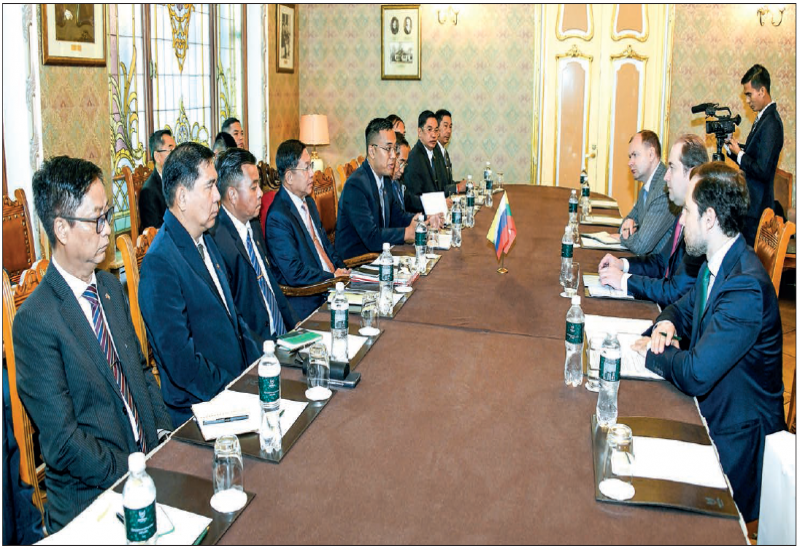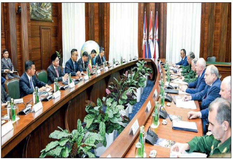 CHAIRMAN of the State Administration Council Commander- in-Chief of Defence Services Senior General Min Aung Hlaing held a working meeting with dignitaries from the Ministry of Defence, on behalf of Minister of Defence of the Russian Federation Army General Sergey Kuzhugetovich Shoigu at the parlour of the Ministry of Defence of the Russian Federation on 11 July.