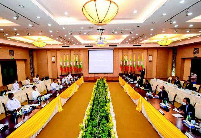 MEMBER of the State Administration Council Union Minister at the Union Government Office (1) Chairman of the National Solidarity and Peacemaking Negotiation Committee received the delegation led by Special Envoy of the ASEAN Chair on Myanmar Deputy Prime Minister of Cambodia and Minister for Foreign Affairs and International Cooperation Mr Prak Sokhonn yesterday morning in Nay Pyi Taw.