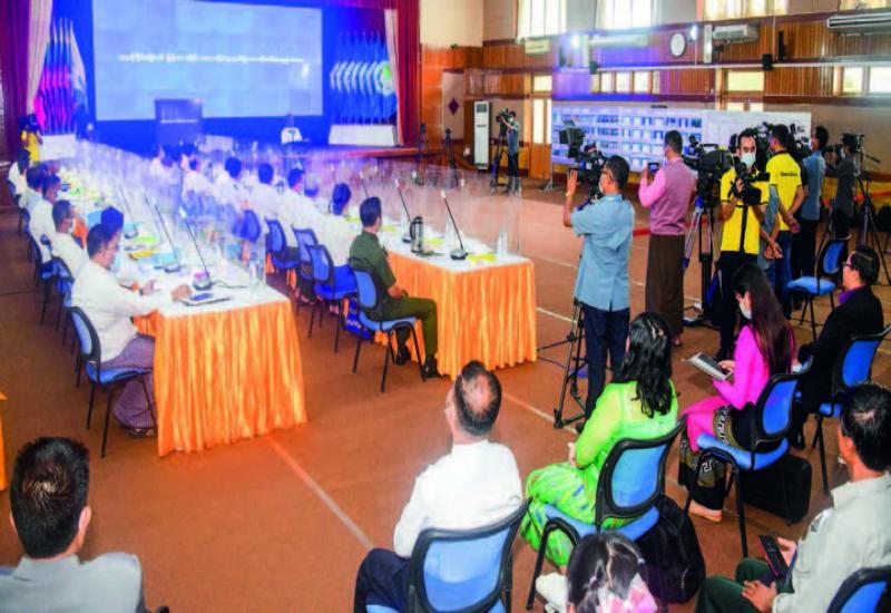 CHAIRMAN of State Administration Council Prime Minister Senior General Min Aung Hlaing, accompanied by SAC Member Admiral Tin Aung San, Joint Secretary Lt-Gen Ye Win Oo, Union Ministers U Thaung Han, U Min Thein San, U Shwe Lay and Yangon Region Chief Minister U Soe Thein, senior officers from the Commander-in-Chief of Defence Services Office, the Yangon Command Commander, the mayor and relevant officials inspected the upgrading of the Aung San Stadium in Mingala Taungnyunt Township of Yangon Region yesterday morning.