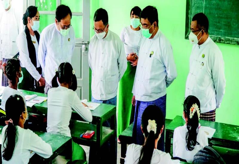 UNION Minister for Education Dr Nyunt Pe, Union Minister for Health Dr Thet Khaing Win, Chairman of the Nay Pyi Taw Council Dr Maung Maung Naing, Deputy Minister for Edu cation U Zaw Win, and officials visited No 5 Basic Education High School in Zabuthiri Township and No 18 Basic Education High School in Dekkhinathiri Township in Nay Pyi Taw yesterday morning.