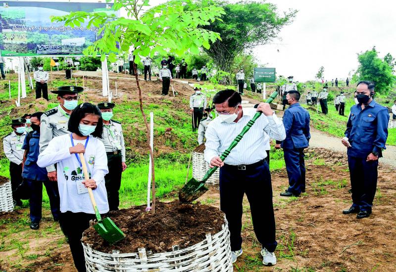 CHAIRMAN of the State Administration Council Prime Minister Senior General Min Aung Hlaing attended the 2022 environmental greening activity at No (13) Yan Aung Myin forest reserve in Lewe Township of Dekkhina District in Nay Pyi Taw yesterday.
