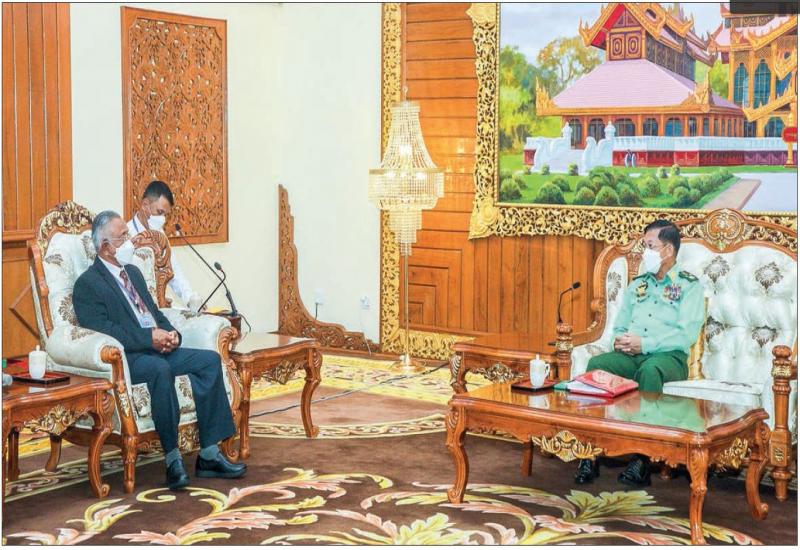 HAIRMAN of the State Administration Council Commander-in-Chief of Defence Services Senior General Min Aung Hlaing received a peace delegation led by Vice-Chairman of the United Wa State Party (UWSP) U Lau Yaku at the parlour of Bayintnaung Villa in Nay Pyi Taw yesterday morning to talk about peace issues.