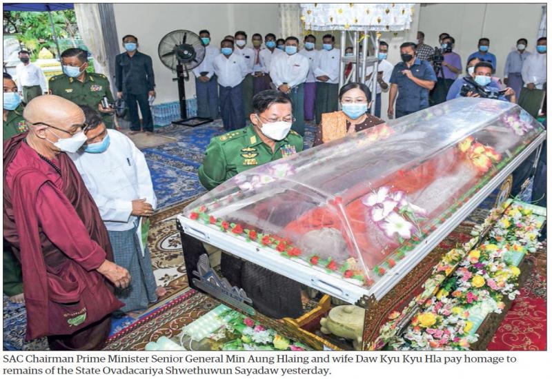 VENERABLE Sayadaw Abhidhaja Maha Rattha Guru Abhidhaja Agg Maha Saddhamma Jotika Bhaddanta Saddhiya, State Ovadacariya Sayadaw, Presiding Nayaka of Ponnya Neinmitayama Shwethuwun Monastery in Kyeepwayay Ward of Thingangyun Township in Yangon Region, passed away at 1:40 am on 21 May 2022, Saturday.