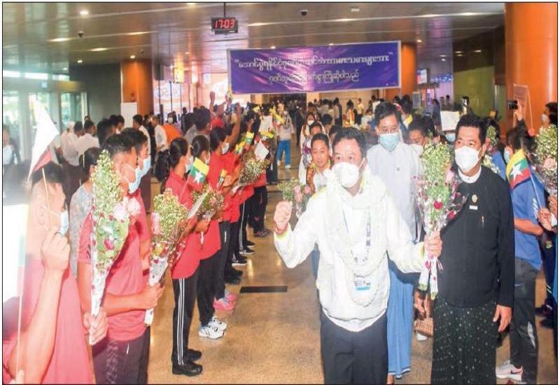 THE Myanmar sports contingent, which competed in the 31st Southeast Asian Games which is being held from 12 to 23 May in Hanoi and other cities, returned to Yangon International Airport at 4 pm yesterday by air.