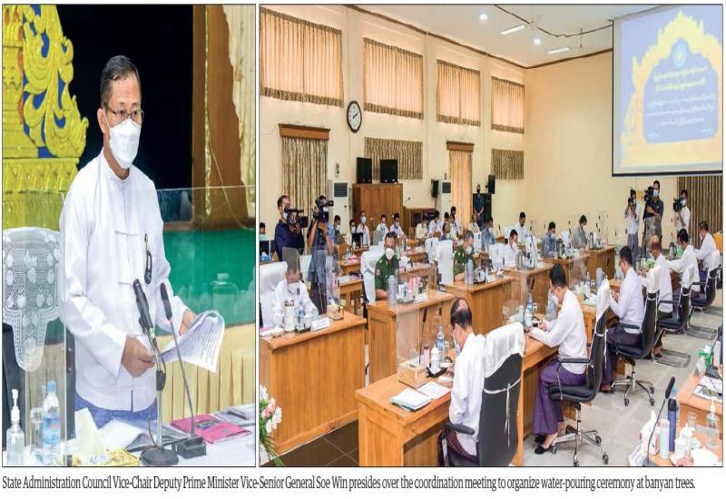 THE United Nations General Assembly decided its resolution 54/115 to designate the full moon day as the International Vesak day or Visākha day, said the Chairman of the Leading Committee for organizing the 14th ceremony of pouring water at banyan trees on the full moon day of Kason Vice-Chairman of the State Administration Council Deputy Prime Minister Vice-Senior General Soe Win at the coordination meeting between the leading committee and the working committee yesterday afternoon.