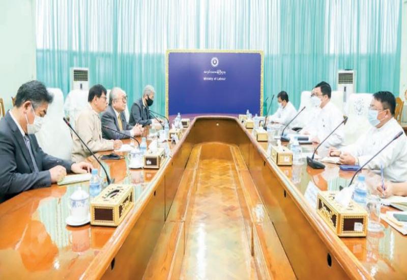 UNION Minister for Labour U Myint Kyaing received Chairman Mr Watanabe Hideo of the Japan-Myanmar Association-JMA and delegates at the Ministry in Nay Pyi Tawyesterday morning.