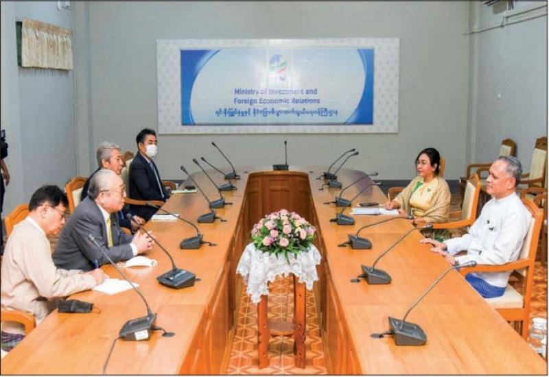 U Aung Naing Oo, Union Minister for Investment and Foreign Economic Relations received the delegation led by Mr Watanabe Hideo, Chairman of Japan-Myanmar Association yesterday in Nay Pyi Taw.