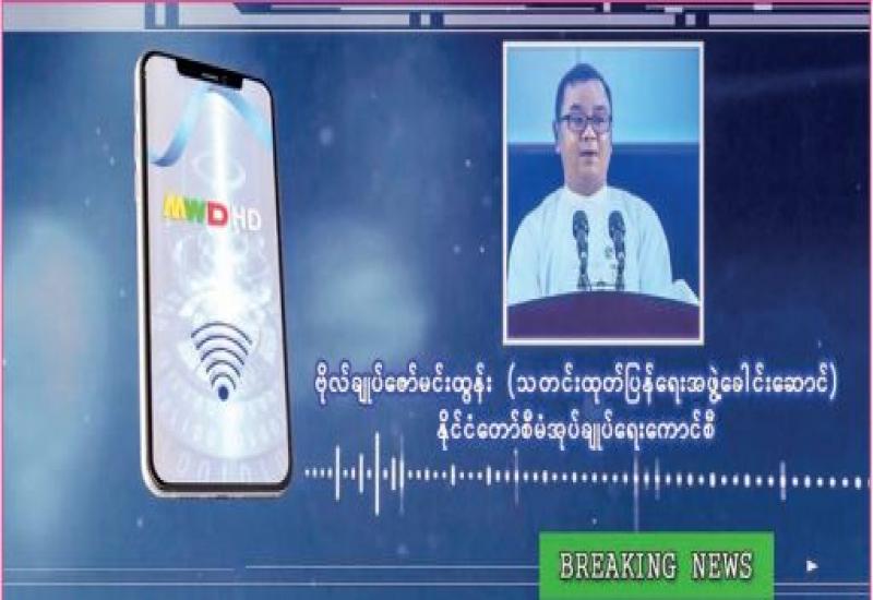 MOC virtually convened a coordination meeting on the facilitation of the fuel oil import and distribution process at the Ministry of Commerce meeting hall yesterday. Union Minister Dr Pwint San gave a remark.