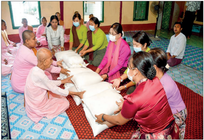 MEMBER of the State Administration Council Daw Aye Nu Sein, accompanied by the chairperson and members of the Rakhine State Maternal and Child Welfare Association Supervisory Committee, donated rice bags to nunneries in Sittway.