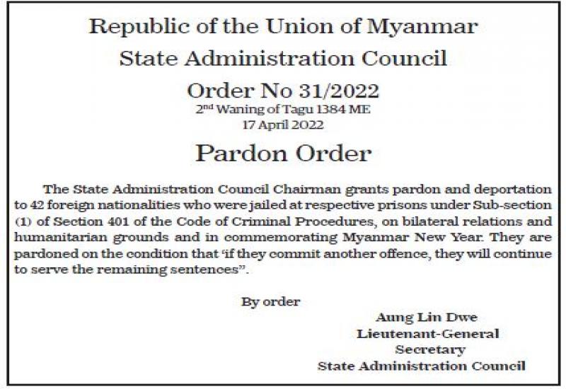 Republic of the Union of Myanmar State Administration Council Order No 31/2022