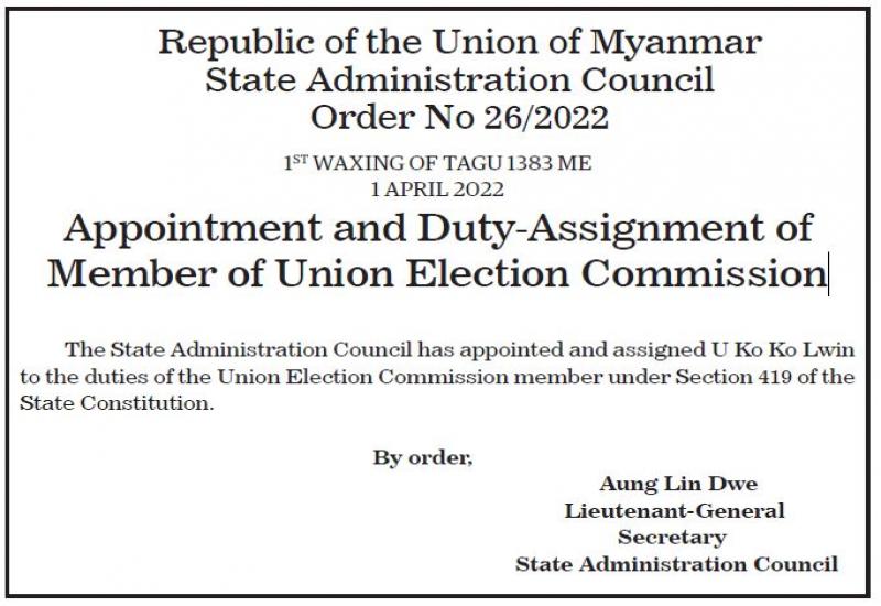 Appointment and Duty-Assignment of Member of Union Election Commission