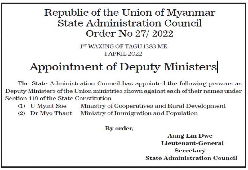 AT the invitation of Mr Wang Yi, State Councilor and Minister of Foreign Affairs of the People’s Republic of China, U Wunna Maung Lwin, Union Minister for Foreign Affairs, paid a working visit to Huangshan, Anhui Province of the People’s Republic of China from 31 March 2022 to 2 April 2022. The Myanmar delegation led by the Union Minister for Foreign Affairs arrived back in Nay Pyi Taw from China by air at 2 pm on 2 April 2022.