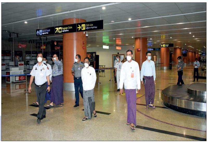 UNION Minister for Hotels and Tourism Dr Htay Aung went to the Yangon International Airport to inspect tourist information counters opened by the ministry in the international and domestic arrival buildings.