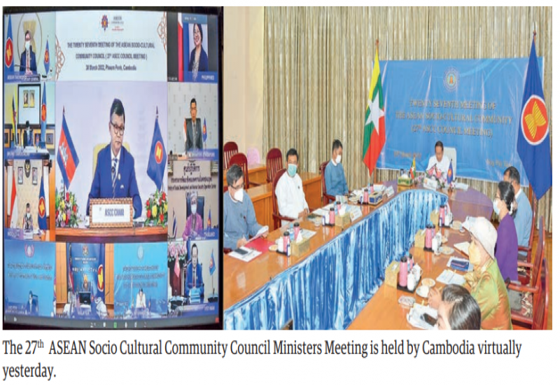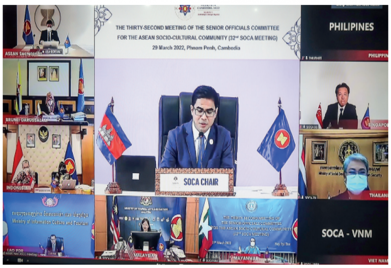 MYANMAR attends the 5th meeting of the Working Group on Culture of Prevention (5th CoP) and the 32nd ASEAN Senior Officials Meeting on Socio-Cultural Community (32nd SOCA) organized by Cambodia, the current Chair of the ASEAN in 2022, on 28 and 29 March through video conferencing.