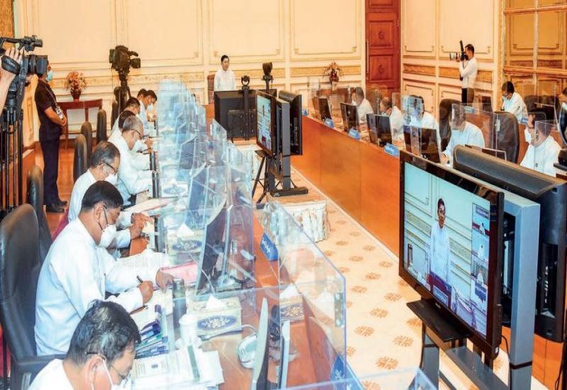 U Wunna Maung Lwin, Union Minister for Foreign Affairs, participated in the 18th BIMSTEC Ministerial Meeting via videoconference from the Ministry of Foreign Affairs, Nay Pyi Taw which was held in Colombo, Sri Lanka in hybrid mode at 10:25 am on 29 March 2022.