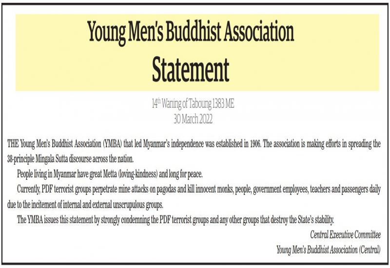 Young Men’s Buddhist Association condemn the PDF terrorist groups and any other group that destroy the State's stability