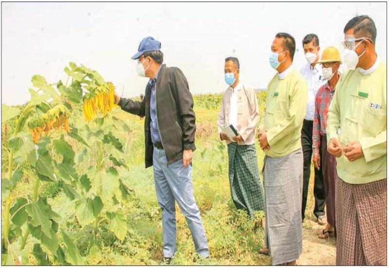 BAGO Region Chief Minister U Myo Swe Win, along with the Region Government’s cabinet members, watched the successful cultivation of farmer U Myint Soe’s 307 acres of sunflower and U Thein Tun’s 10 acres of sunflower fields in Thayawady Township, on 2 March, and fulfilled requirements.