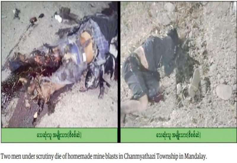 WHILE planting a homemade mine to commit terrorist attacks in Chanmyathazi Township, Mandalay Region, two terrrorists died of the mine explosion yesterday morning.